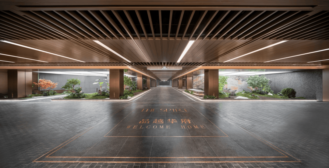 引天然景不雅的阳光车库、通吊铝板/铝格栅的车库天花板、石材拼图的车马厅车道……